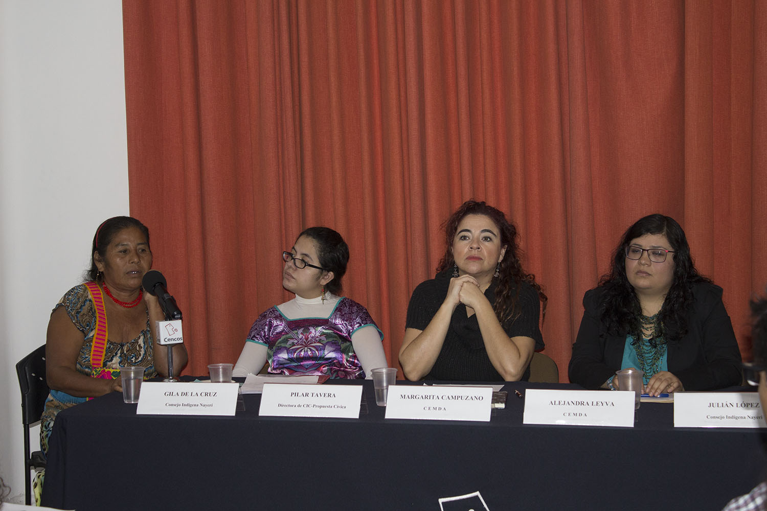 Al respeto, Don Julián López Cánere, integrante del Consejo Indígena Náyeri, expresó que su comunidad está enfrentando graves amenazas en contra de su territorio por el proyecto de construcción de la hidroeléctrica Las Cruces, así como por concesiones mineras que pretenden explotarse en la zona. Asimismo, mencionó que “la preocupación de nuestras comunidades es que, por el intento de imponer el proyecto hidroeléctrico Las Cruces, se han violado nuestros derechos en diferentes formas. Por un lado, nuestro derecho a la consulta fue violado. No se hizo la consulta sino que se realizó un proceso amañado; están simulando como si nos hubieran consultado. No hemos sido consultados. Por otro lado, no están respetando nuestro derecho a decidir qué queremos en nuestras comunidades. Nosotros ya decidimos y no queremos que se construya la presa Las Cruces, por eso pedimos la cancelación definitiva de este proyecto, respeto a nuestros derechos y territorio, alto a los engaños y abusos, alto a la persecución y violencia. Queremos seguir siendo náyeris y vivir en paz”.