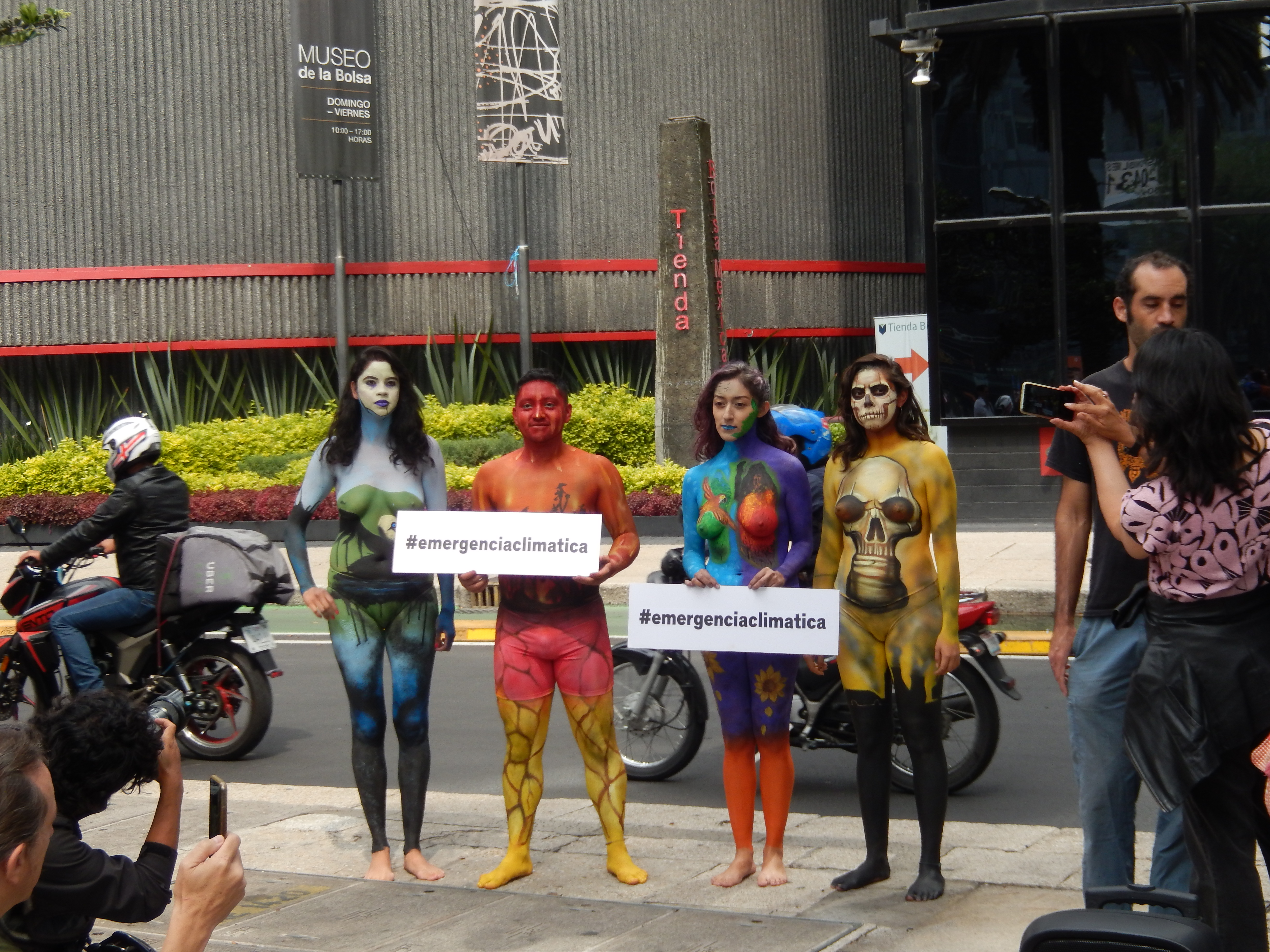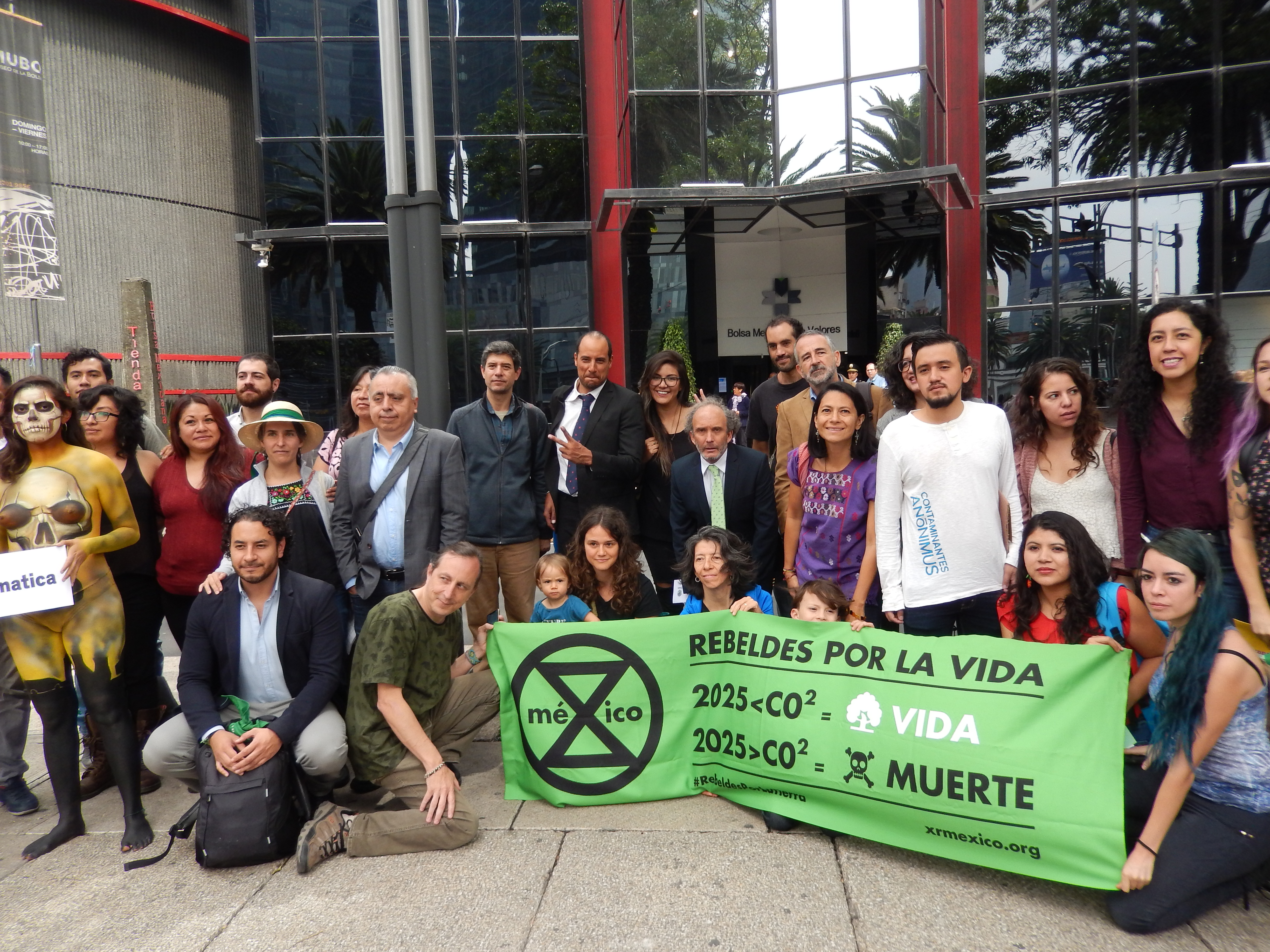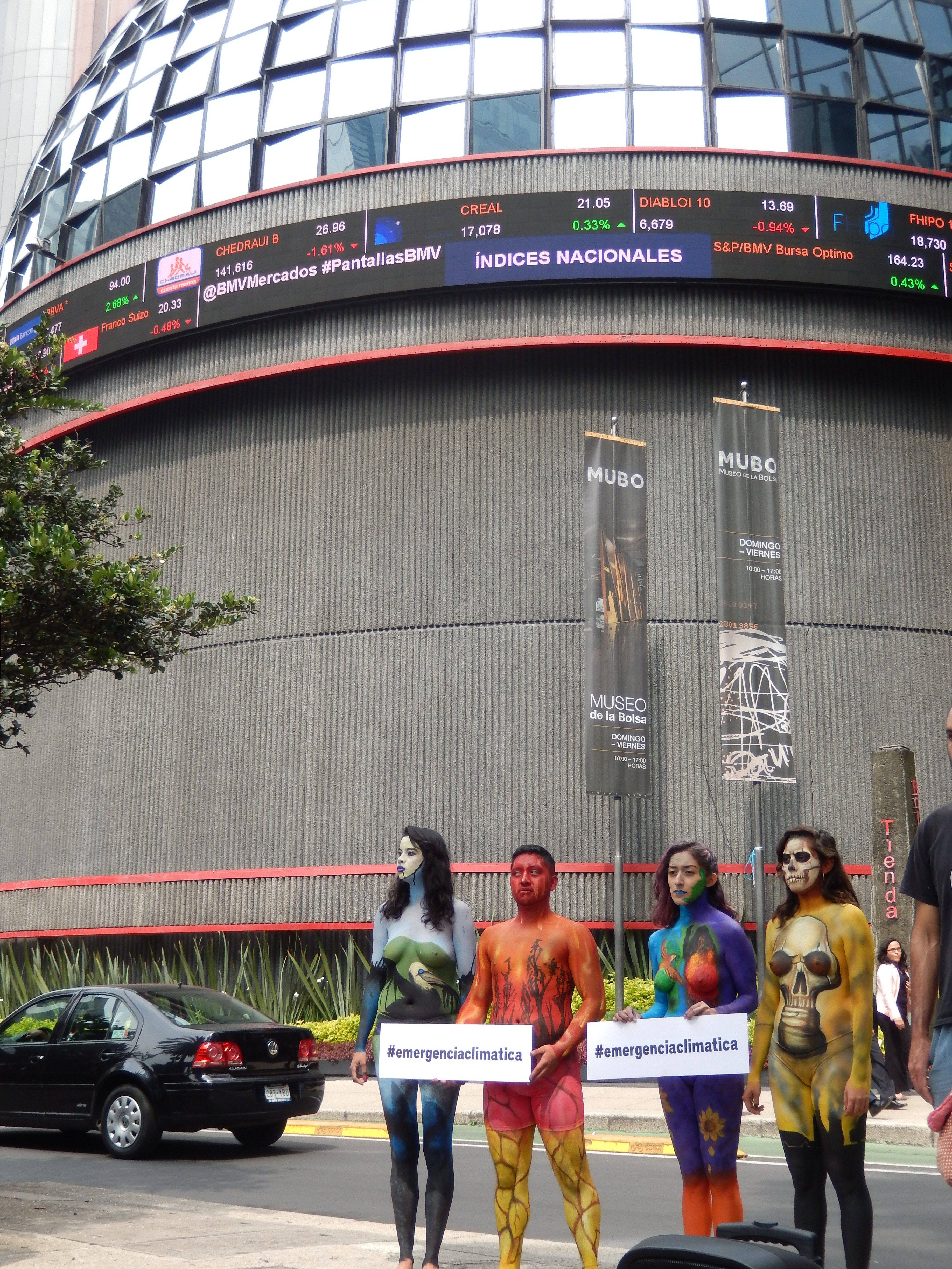 Organizaciones de la sociedad civil y personas interesadas en frenar la emergencia climática que enfrenta nuestro planeta, se manifestaron este lunes frente a la Bolsa Mexicana de Valores (BMV) a fin de generar conciencia sobre la relación que existe entre el acelerado calentamiento global y el modelo de desarrollo económico prevaleciente, el cual privilegia el consumo y la quema excesiva de combustibles fósiles por encima de la protección de los ecosistemas y los derechos humanos.