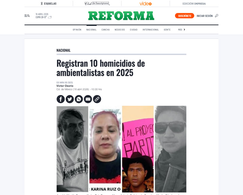 La defensa del territorio sigue siendo una actividad de alto riesgo en México.