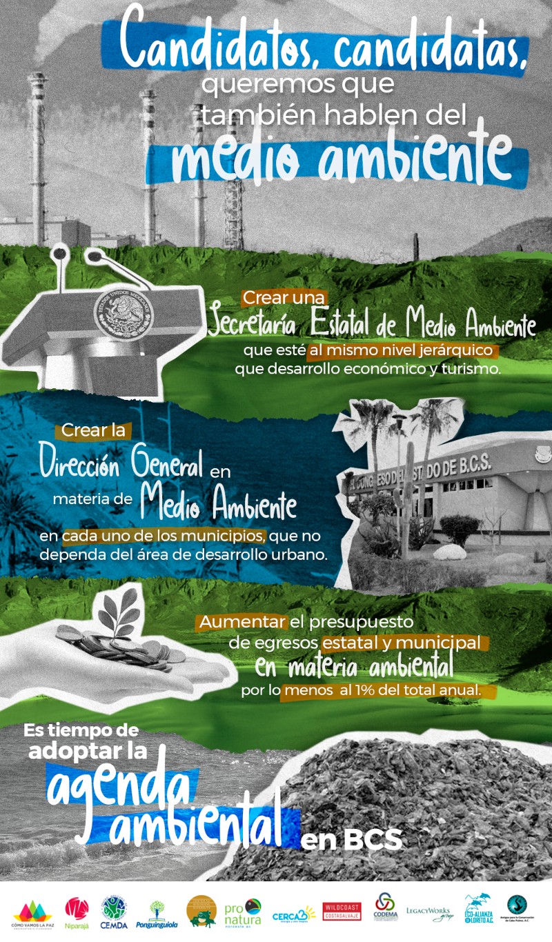 Por todo lo anterior, las organizaciones firmantes, establecemos como necesario para avanzar en el desarrollo de una agenda ambiental en Baja California Sur, lo siguiente: